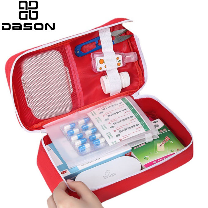 Die tragbare Erste-Hilfe-Tasche mit Tragegriff, innen mit organisierter Netztasche und elastischen Bändern hält Ihre Erste-Hilfe-Artikel ordentlich und organisiert, klein genug, um sie in Ihrem Handgepäck oder Rucksack zu verstauen