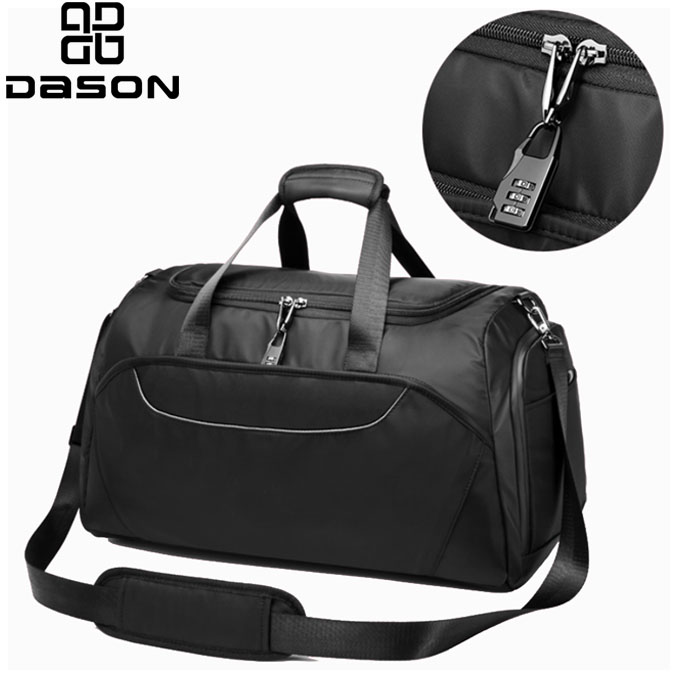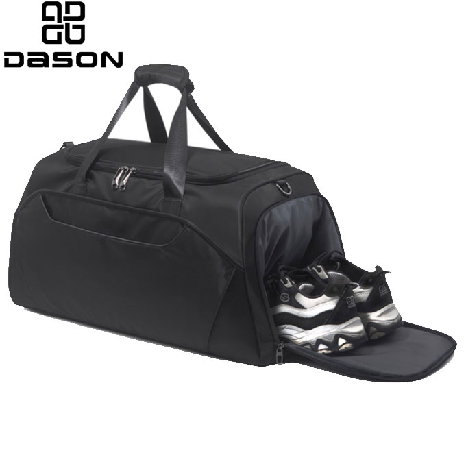 Unsere Reisetasche mit Schuhfach aus wasserabweisendem Oxford-Gewebe mit hochdichtem Polyesterfutter und kratzfestem Planen-PVC;